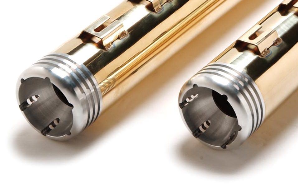 ※サイレンサー本体のカラーは真鍮に磨きをかけたソリッドバフタイプとなります。クロームメッキ等の加工は行われていない商品となりますのでご注意くださいませ。適合車種エンジンタイプ:TC96マフラータイプ:スリップオンマフラーサイレンサー形状:ファットマン全長:740mm外径:100mm材質/カラー:真鍮素材を研磨し磨き上げたソリッドバフ仕上げ/エンドカラー仕様:ソリッドバフ仕様:インナーサイレンサー標準穴径(12mm)組込済/取付ステー付属。マフラーには後部にモーターステージロゴがレーザーで刻印されております。特徴:ブラスマフラーはノーマルエキパイにスリップオン取付です。マフラー本体の外殻部に他に類を見ない管楽器と同じ真鍮素材を採用。肉厚の真鍮素材と独自のインナーサイレンサーでハーレーらしい重低音でキレのある音質を実現。インナーサイレンサー側面の穴径を変えることで音質、音量を変更することが可能(別途お買い求めください)。FLD/15〜FXDLは標準で12mmが装着されています(規制外)。車種別専用ステーが同梱されておりますので、マフラーのセットのみでボルトオン装着可能です。備考:迫力のフォルム、外径100mmのファットマンシリーズはブラスマフラー伝統のオリジナルインナーサイレンサーを装着。さらにインナーサイレンサーとは別にファットマン専用のパンチング&劣化の少ない焼結グラスウールを装備することによりファットマン特有の重低音を実現。アルミ削り出しのエンドキャップで高級感も演出。排気の音量、効率を変更したい場合は別売の交換用インナ-サイレンサーをお求めください。