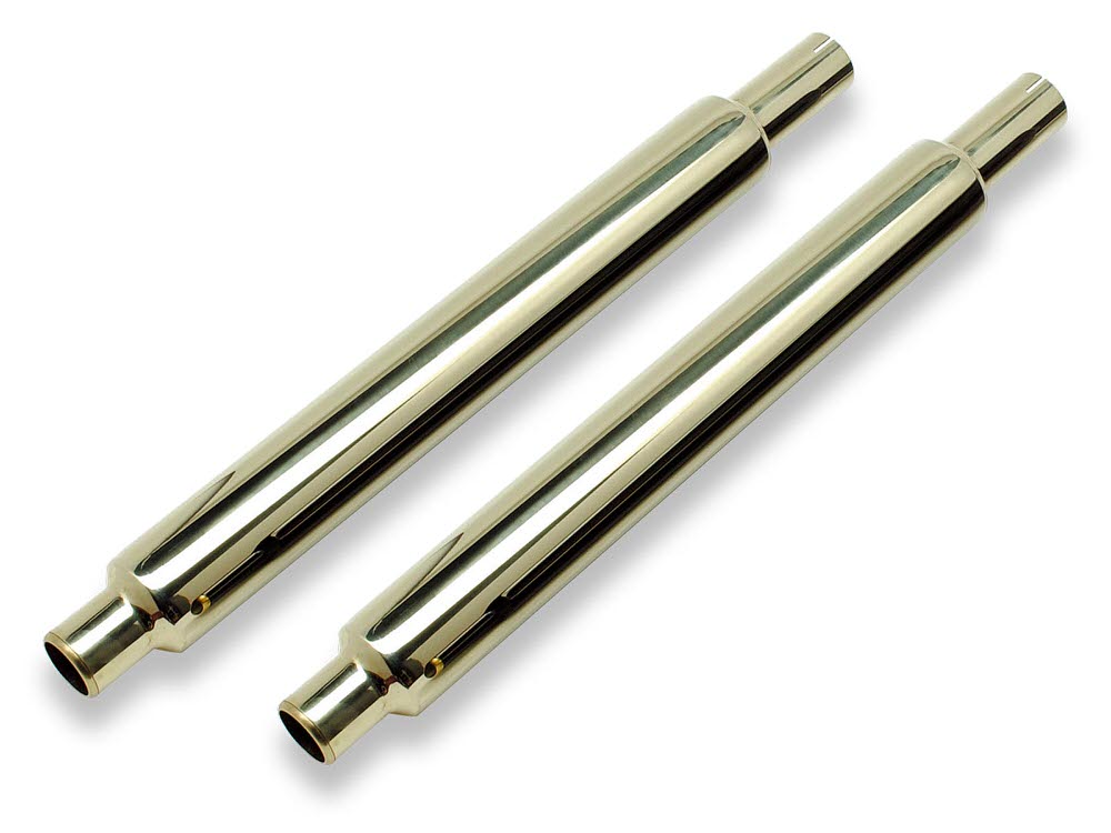 ※サイレンサー本体のカラーは真鍮に磨きをかけたソリッドバフタイプとなります。クロームメッキ等の加工は行われていない商品となりますのでご注意くださいませ。適合車種エンジンタイプ:TC96B/TC103B/TC110Bマフラータイプ:左右独立スタイルのソフテイルファミリー全般に対してスップオン/モーターステージ製左右独立エキパイを取り付けたソフテイルファミリー全般に対してスリップオンマフラーサイレンサー形状:グライドシガー全長:720mm外径:76mm材質/カラー:真鍮素材を研磨し磨き上げたソリッドバフ仕上げ/エンドカラー仕様:ソリッドバフ仕様:2本セット/インナーサイレンサー標準穴径φ6mm組込済取付バンドステーマフラーバンド付属左右にモーターステージロゴがレーザーで刻印されております。特徴:グライドシリーズはFLSTS/FLSTSCにスリップオン取付です。その他、左右独立エキパイを取り付けた全ソフテイルファミリーに対してスリップオン取付です。マフラー本体の外殻部に他に類を見ない管楽器と同じ真鍮素材を採用。肉厚の真鍮素材と独自のインナーサイレンサーでハーレーらしい重低音でキレのある音質を実現。インナーサイレンサー側面の穴径を変えることで音質、音量を変更することが可能。別途お買い求めくださいませ。備考:排気の音量、効率を変更したい場合は別売の交換用インナ-サイレンサーをお求めください。【ノーマルマフラーが右側2本出しの〜06年式ソフテイルファミリーを左右2本出しスタイルに必要なパーツ】20050198 2in2左右独立エキパイ1セット/20050250 サポートチューブ2本/20050270 ヒートガード1/20050271 ヒートガード2/ヒートガードストレート(20080001 FLSTC等 505mm)(20080136 FLSTF FLSTN等 440mm)/各エキパイ・ヒートガード ブラックメッキ仕様もラインナップ有【ノーマルマフラーが右側2本出しの07年式〜ソフテイルファミリーを左右2本出しスタイルに必要なパーツ】20050198C 2in2左右独立エキパイ1セット/20050250 サポートチューブ2本/20050270 ヒートガード1/20050271 ヒートガード2/ヒートガードストレート(20080001 FLSTC等 505mm)(20080136 FLSTF FLSTN等 440mm)/12年式〜車両は20111023 12ミリオーツボス変換アダプター2個必要/各エキパイ・ヒートガード ブラックメッキ仕様もラインナップ有