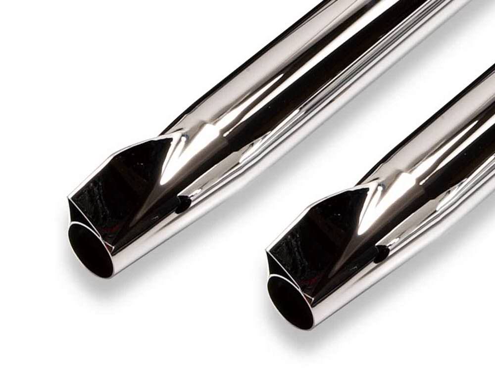 適合車種エンジンタイプ:EVO/TC88/TC96/TC103/TC110マフラータイプ:スリップオンマフラーサイレンサー形状:グライドフィッシュ全長:770mm外径:76mm材質/カラー:真鍮素材を研磨後クロームメッキ仕上げ仕様:2本セット/インナーサイレンサー標準穴径φ6mm組込済取付バンドステー/マフラーバンド付属/左右にモーターステージロゴがレーザーで刻印されております。特徴:ブラスマフラーはノーマルエキパイにスリップオン取付です。マフラー本体の外殻部に他に類を見ない管楽器と同じ真鍮素材を採用。肉厚の真鍮素材と独自のインナーサイレンサーでハーレーらしい重低音でキレのある音質を実現。インナーサイレンサー側面の穴径を変えることで音質、音量を変更することが可能。別途お買い求めくださいませ。インナーサイレンサー穴径は4mm、6mm、8mm、10mm、12mm、遮蔽版のないオープン、他規制対応タイプをラインナップ(規制外)。車種別専用ステーが同梱されておりますので、マフラーのセットのみでボルトオン装着可能です。備考:排気の音量、効率を変更したい場合は別売の交換用インナ-サイレンサーをお求めください。真鍮エンドが装着されているタイプのマフラーは別売のメッキエンド/ブラックエンドにも交換可能です。