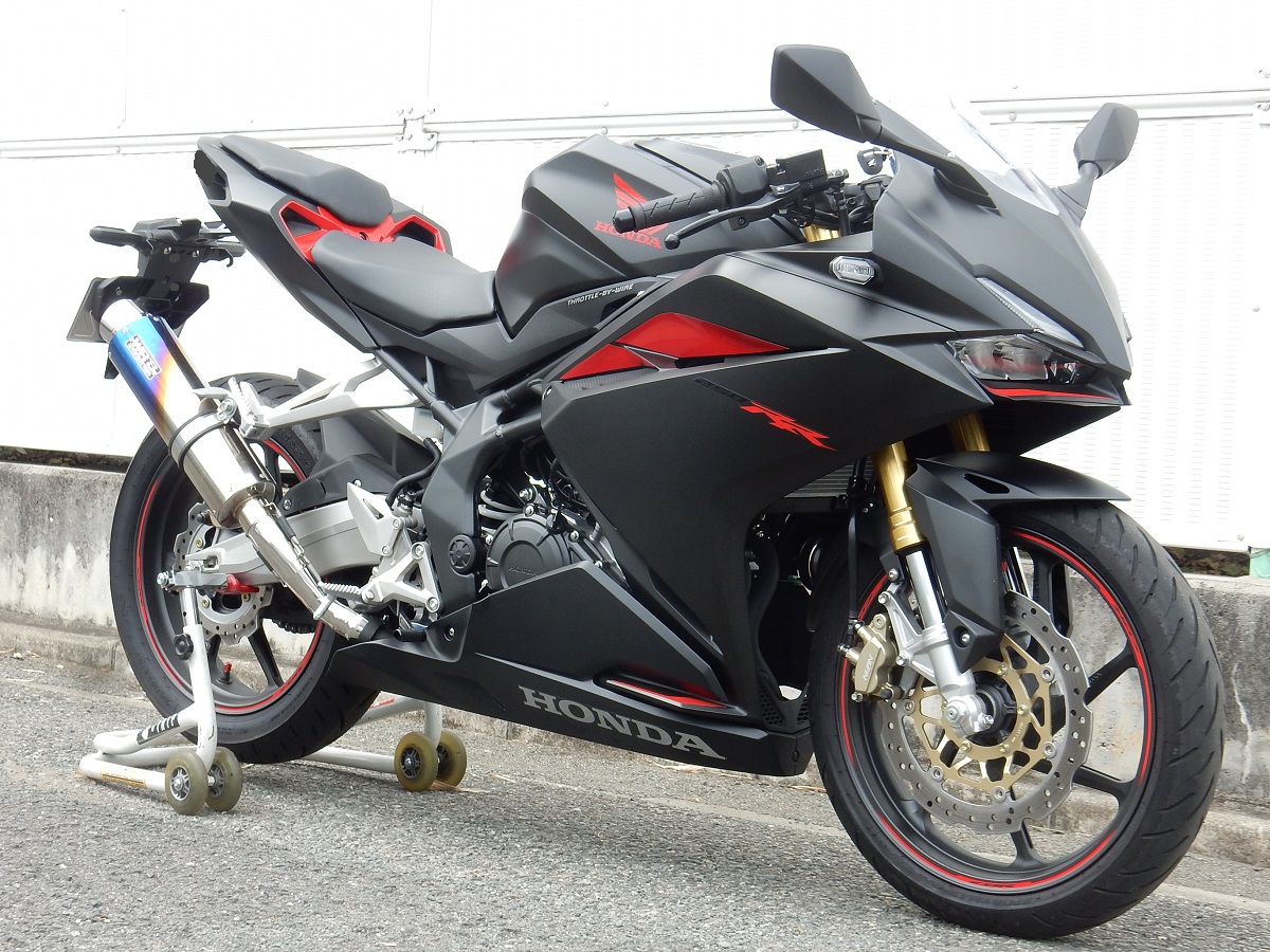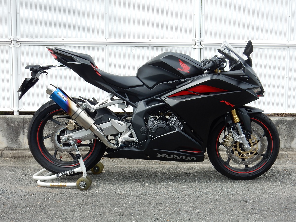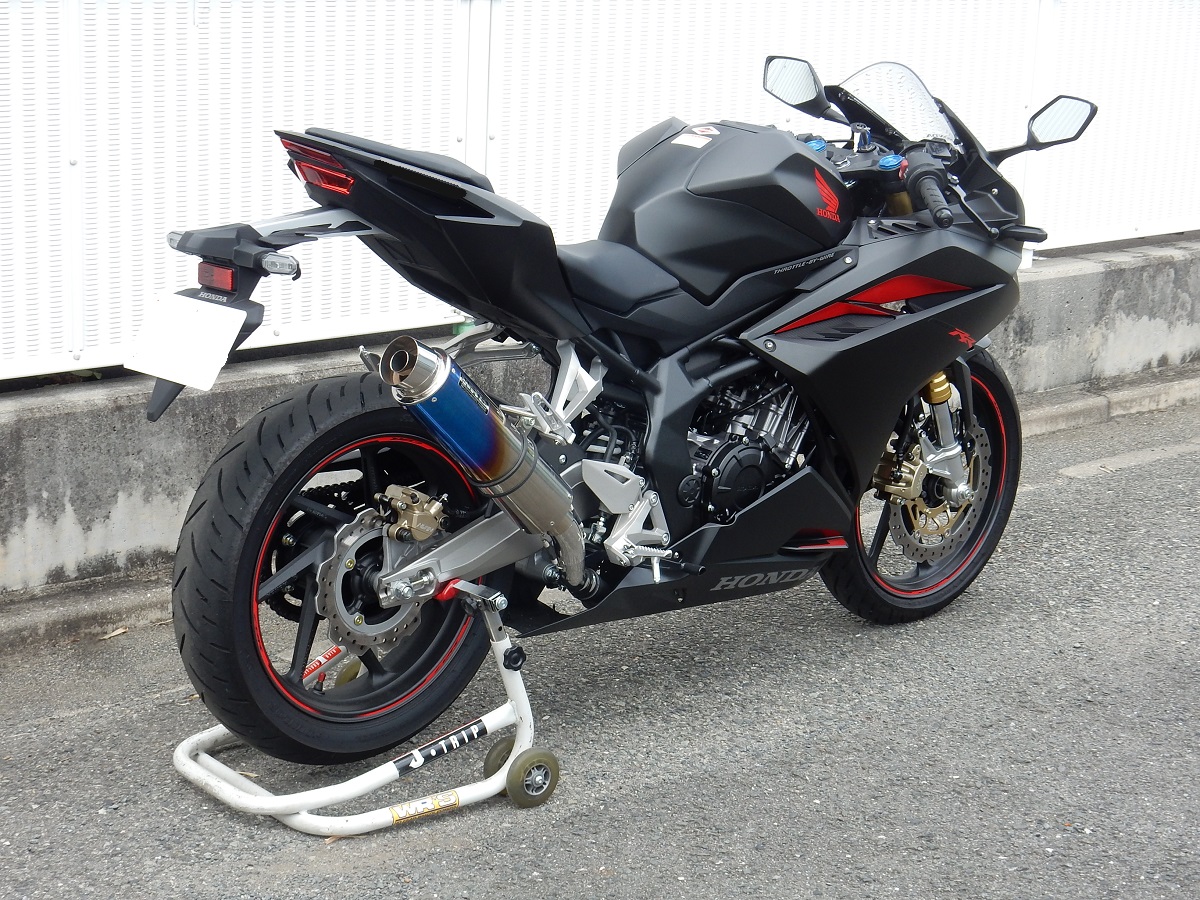 近接騒音値:88db加速走行騒音77db付属品:ジョインロガスケットオイル交換:OK/オイルフィルター:OKタイプ:JMCA政府認証ベンチテストにより徹底的に性能をチェック、CBR250RRの特性をより活かすべく開発しました。アクセルレスポンスの改善、低中速域のトルク・パワーUPによって回転の繋がりが更にスムーズに。 スリップオンと思えぬパワー感を堪能して頂けます。センターパイプ前部にφ42.7→φ50テーパーパイプを採用する事により、ストレスのない吹け上がりを実現。音質はツインの独特のパルス感を更にレーシーなイメージに味付け。ワイルド感あるサウンドを堪能頂けますノーマルマフラーの持つ重厚なイメージからよりスポーティーさを演出したラウンドタイプサイレンサー。 ※スリップオンマフラー取り付けに必要なジョイントガスケットを付属しております。新型CBR250RRはインドネシア仕様、国内仕様とあり、国内仕様は厳しい環境基準値に適合させた結果、インドネシア仕様より国内仕様の方が若干パワー的に低い数値となりましたが、このスリップオンはその差を全く感じさせないどころかスリップオンを装着する事で、フルパワーのインドネシア仕様を凌ぐ性能に変貌。(燃調はノーマルのままのポン付けです)明らかに違うレスポンス感やパワー感を体感頂けると思います。※これが本来のCBR250RRの姿です。特にスタートからの加速感、パーシャル(一定)状態からのアクセルを開けた時の加速感は、どのモードスイッチからでも俊敏に反応してくれるので、乗り手の思い通りのイメージでバイクとの一体感を感じて頂けると思います。音質的にも金属チックな音質からツイン独特のマフラー音になり、高回転域まで回せば回すほどレーシングサウンドを思わす音質へと変貌、音量はしっかり抑えながらも明らかにスポーティーな音質で低音の効いた存在感のある音質はCBR250RR本来のサウンドを楽しんで頂けるのではないかと思います。マフラー重量に関してはどのサイレンサータイプを選択してもノーマルマフラーからの重量は半分以下から約2/3位の軽量化になり、見た目の軽快感と共に実際にも取り回しや乗っている時の切り返し等で軽量化をしっかり感じて頂けるのではないかと思います。またこの商品はマフラー装着に必要なジョイントガスケットが同梱されていますので、しっかりとした工具、それに整備経験があれば、マフラー到着後すぐに交換が可能です。※交換目安時間30分〜約1時間位。