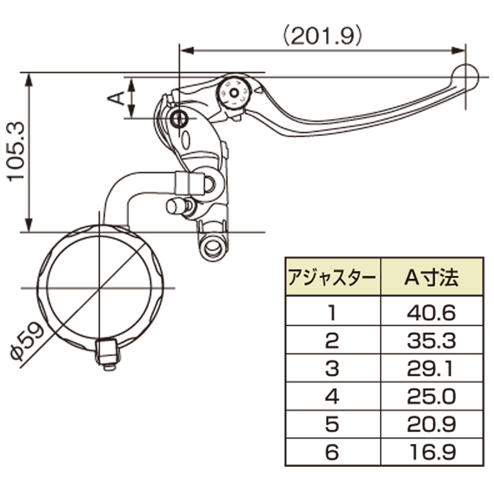 カラー:ブラックボディ/ブラックレバーピストンサイズ:Φ19(横型5/8インチ相当)適合ハンドル:Φ22.2mmピストンサイズΦ19(横型5/8インチ相当)。レバーアジャストは6段階調整可能。適合ハンドル径22.2mm。より格好いいハンドル周りのカスタムがお楽しみいただけます。バンジョーサイズ:M10×P1.25。取付可能ミラーボルトサイズ:M10×P1.25。※定期的(2年毎)なフルード交換を行なってください。