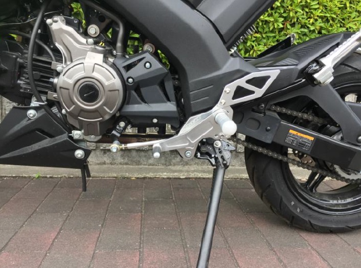 4ポジションと好みの位置を選べストリートからサーキットユーザーまで幅広く使用して頂けるように設定しました。特にリヤマスターシリンダをSTD位置で大幅なBACK位置を実現出来るのも特徴です。材質は ジュラルミン アルマイト加工左右ペダルにベアリング採用純正ブレーキホース、ブレーキスイッチ可ノーマルマフラー、アンダーカウル可フレームカバー無加工にて取り付け可110mmバック0mmアップ110mmバック15mmアップ125mmバック23mmアップ125mmバック0mmアップ