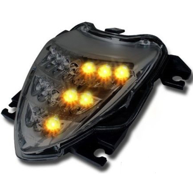 LEDテールライトにウインカー機能をビルトインしたテールライトです。ウインカー作動時はオレンジのLEDが赤に替わって点滅します。シンプルな配線構造なので取り付けも比較的容易にできます。本製品はウインカー線を繋がなければ通常のテールライトとしても使用できます。ナンバー灯が内蔵されています。※純正で内蔵されている車両の場合(ナンバー灯の追加装着が必要な車種もあります)カラー: ライトスモーク【ご注意】※本品は海外向けドレスアップパーツにつき国内の保安基準に適合いたしません(車検非対応)。また、ウインカーはあくまで補助灯として使用し、ノーマルウインカーの取り外しはお止め下さい。本品はリレーや抵抗器の付属はありません。