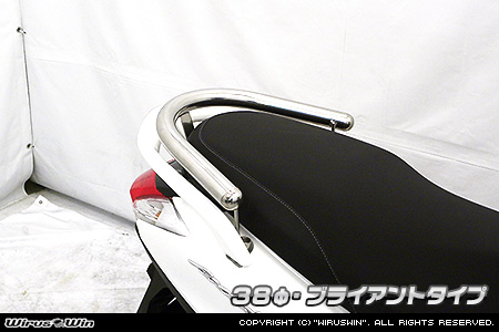 今、ローダウンはスクーターカスタムの定番となっておりますが、そのローフォルムに合わせて出来るだけ車体全体を低く見せるために、車体との一体感を追求したタンデムバーを開発いたしました!車体に沿うように低くデザインされているのでボディラインにフィットし、かつ極太の38mm径のステンレスパイプを採用しましたので、存在感、目立ち度は抜群です!仕上げはバフ掛けを施していますので、高級感タップリでドレスアップには最適の逸品です!バーが極太なので、パッセンジャーが握りやすく力を入れやすいので、安全性も高くなっております。材質は、耐久性、耐腐食性の高いオールステンレス製です。仕上げはバフ掛けを施していますので、高級感タップリでドレスアップにも最適の逸品です。