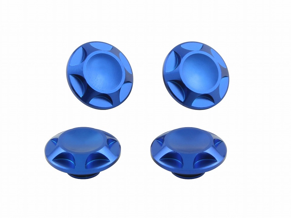 取り付けは市販のキャップボルトの頭に差し込むだけの簡単取り付け。ハンドル周りや、タンデムステップホルダーボルトなどのワンポイントのドレスアップ等にいかがでしょうか?