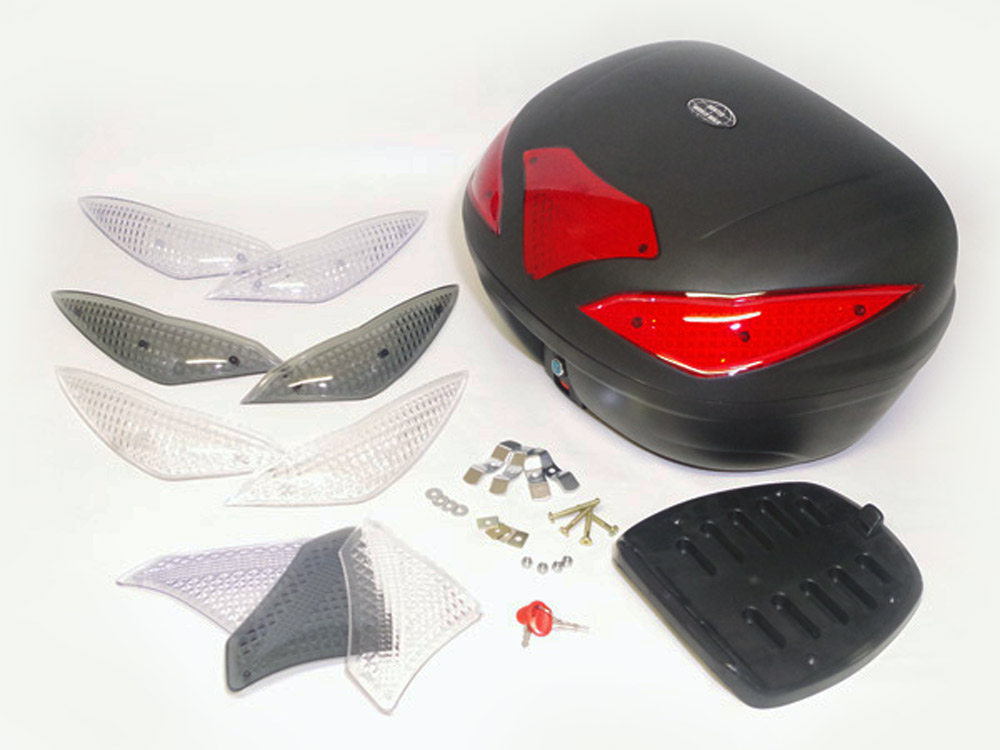 レブル250/500用リアキャリア×1×1フォーカラーズレンズリアボックス 43リットル×1 取り付けに必要な台座・ネジ類が付いたフルセット。更にセット販売だけの限定特典 リアボックスインナーを付属します。リアキャリア 最大積載量:5キロリアボックス容量|大きさ:43リットル/縦:32センチ 横:55センチ 奥行き:40センチ