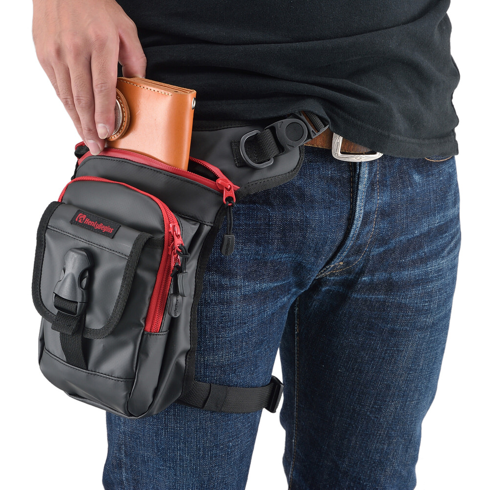 身の回りのものをスッキリ身に付けられるホルスタータイプのバッグ。メイン収納のほか、長財布がすっぽり入る長物収納、4.7インチのスマートフォンが入るフラップ収納の3室構造。素材は水に強いターポリン。メイン小物収納:縦195×横130×厚み30(mm)/長物収納:縦230×横130×厚み35(mm)/フラップ収納:縦160×横100(mm)素材:ターポリン(レッドファスナー仕様)