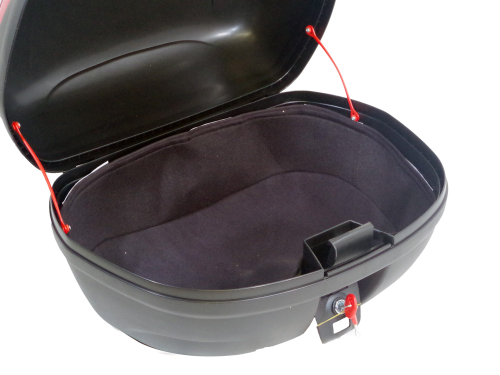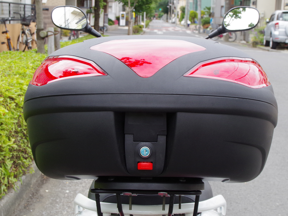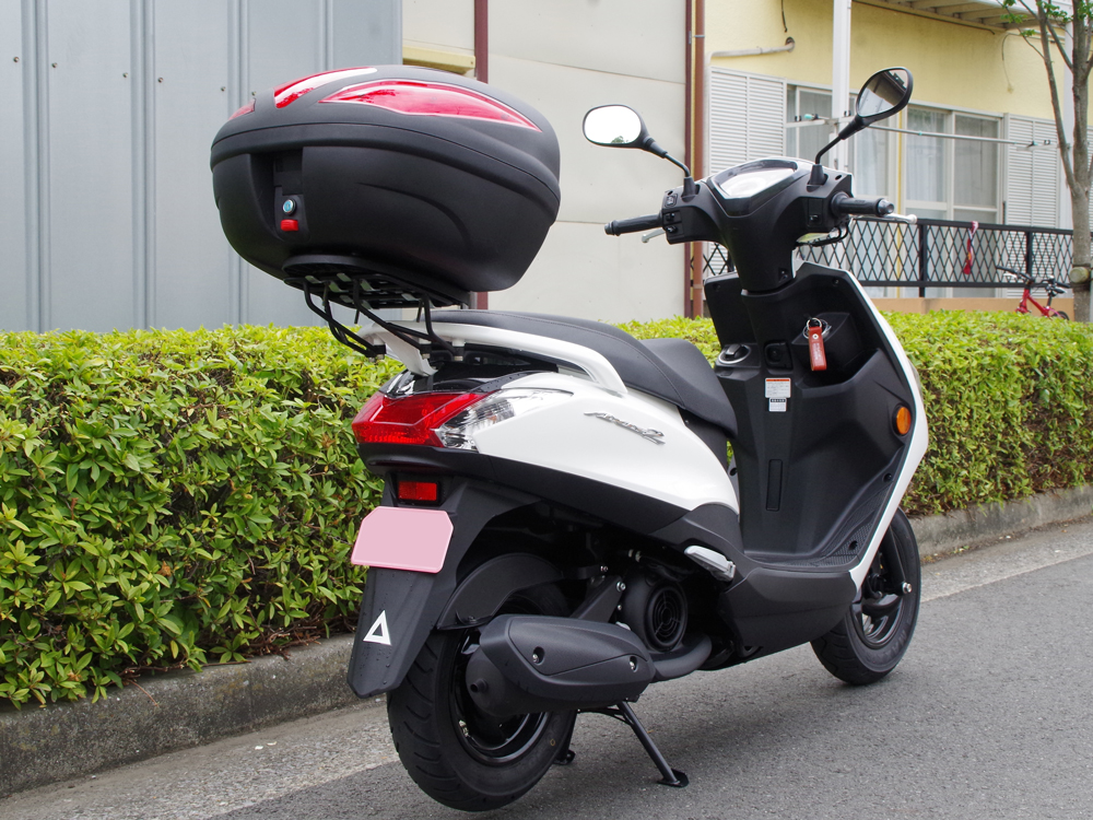 アクシスZ用リアキャリア×1×1フォーカラーズレンズリアボックス 43リットル×1 取り付けに必要な台座・ネジ類が付いたフルセット。更にセット販売だけの限定特典 リアボックスインナーを付属します。リアキャリア 最大積載量:5キロリアボックス容量|大きさ:43リットル/縦:32センチ 横:55センチ 奥行き:40センチ