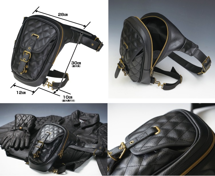 味わいのあるダイヤモンドステッチをあしらったクラッシックシリーズホルスターバッグ味わいのあるダイヤモンドステッチがアクセントの、クラシックシリーズのホルスターバッグ。フロントには使用頻度の高いスマホやロングレザーウォレットなどの収納に最適なポケットを装備。右利きでも左利きでも対応できるように工夫したウエストベルトも嬉しい機能です。メインスペースは深さ30cm、最大奥行き10cmとたっぷりとしたサイズに仕上げ、ゆとりのある収納が可能です。カラー: ブラック容量: 2.4Lサイズ: W18×D10×H30cm(最大)付属品: RA1032-1 サポートベルト 1本
