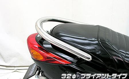 今、ローダウンはスクーターカスタムの定番となっておりますが、そのローフォルムに合わせて出来るだけ車体全体を低く見せるために、車体との一体感を追求したタンデムバーを開発いたしました!車体に沿うように低くデザインされているのでボディラインにフィットし、かつ極太の32mm径のステンレスパイプを採用しましたので、存在感、目立ち度は抜群です!仕上げはバフ掛けを施していますので、高級感タップリでドレスアップには最適の逸品です!バーが極太なので、パッセンジャーが握りやすく力を入れやすいので、安全性も高くなっております。
