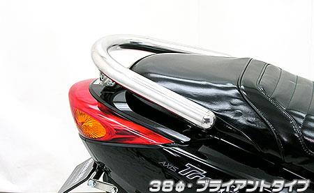 今、ローダウンはスクーターカスタムの定番となっておりますが、そのローフォルムに合わせて出来るだけ車体全体を低く見せるために、車体との一体感を追求したタンデムバーを開発いたしました!車体に沿うように低くデザインされているのでボディラインにフィットし、かつ極太の38mm径のステンレスパイプを採用しましたので、存在感、目立ち度は抜群です!仕上げはバフ掛けを施していますので、高級感タップリでドレスアップには最適の逸品です!バーが極太なので、パッセンジャーが握りやすく力を入れやすいので、安全性も高くなっております。