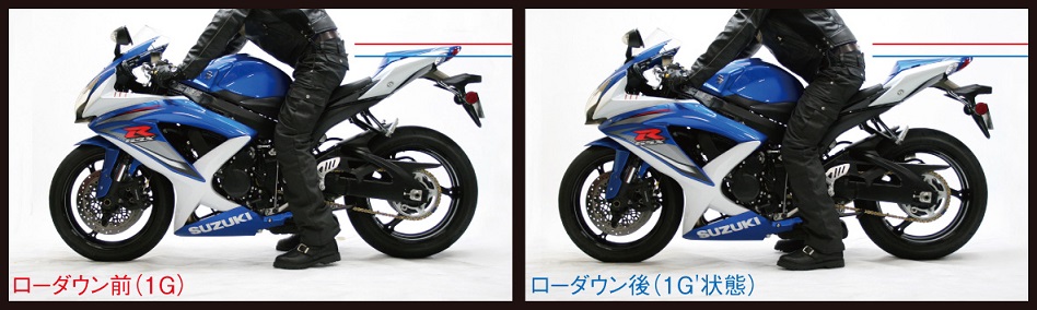 スプリングの自由長を大きく変えずに、レート変更と油面調整で車高を下げるハイパープロならではのローダウンスプリング。車重のみ(1G)の状態では大きく沈み込まず、乗車状態(1G')でしっかりとローダウンする設計のため、サイドスタンドのショート化が必要ありません。(ローダウンタイプ: 約-25mm)スプリングタイプ: コンスタントライジングレート【ご注意】※サイドスタンドを使用する時は、平坦な場所で一速にいれた状態で停車してください。(ローダウンのためノーマル時より車体が起きます)装着後は車体バランスが大きく変化します。必ず前後のセッティングを行ってから乗車してください。