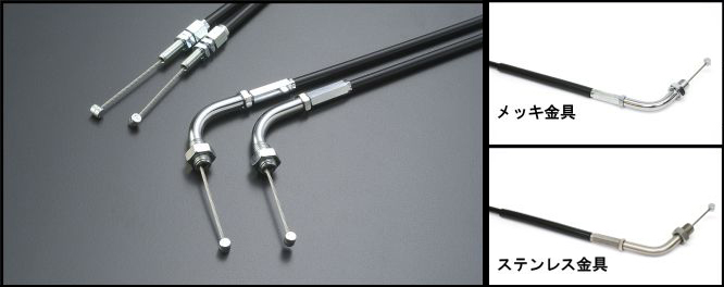 車種別に設計されており、各車種のノーマルキャブレターに対応します。金具タイプ: メッキ引き/戻し: 引き側