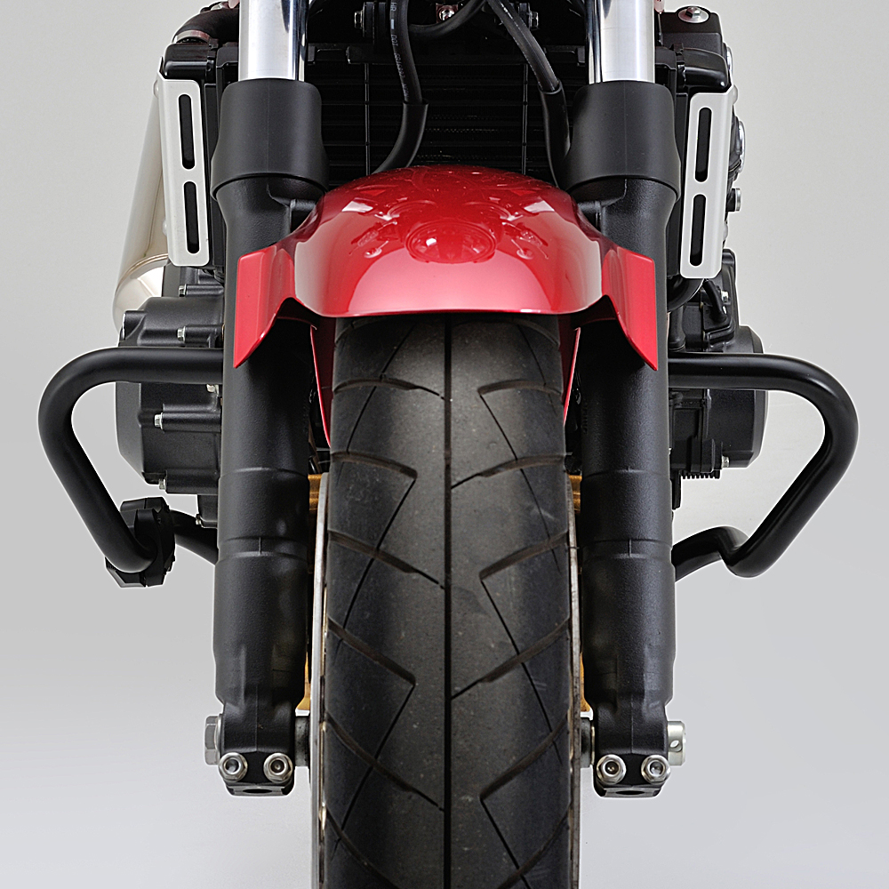 ボルトオン装着可能なφ25.4スチールパイプ製の強固なエンジンガード。立ちゴケ等の軽度な転倒に対し、エンジンやカウルのダメージを軽減します。φ25.4のパイプはアメリカンのハンドルと同径なので、アクションカメラなどハンドルにクランプする用品の装着も可能。付属の樹脂パッド(リダクションスライダー)は軽度なダメージを吸収し、摩耗時には交換可能です。スチール製マットブラック塗装仕上げ。ゴムダンパーを標準装備。装着時にフレームが傷つきにくく、転倒時のダメージを最小限に抑えます。※過度な転倒時には商品が破損する恐れがあります。※本商品はマットブラック塗装のため、飛び石やバイク保管用保護カバーとのすれ等で塗装がはがれる場合があります。