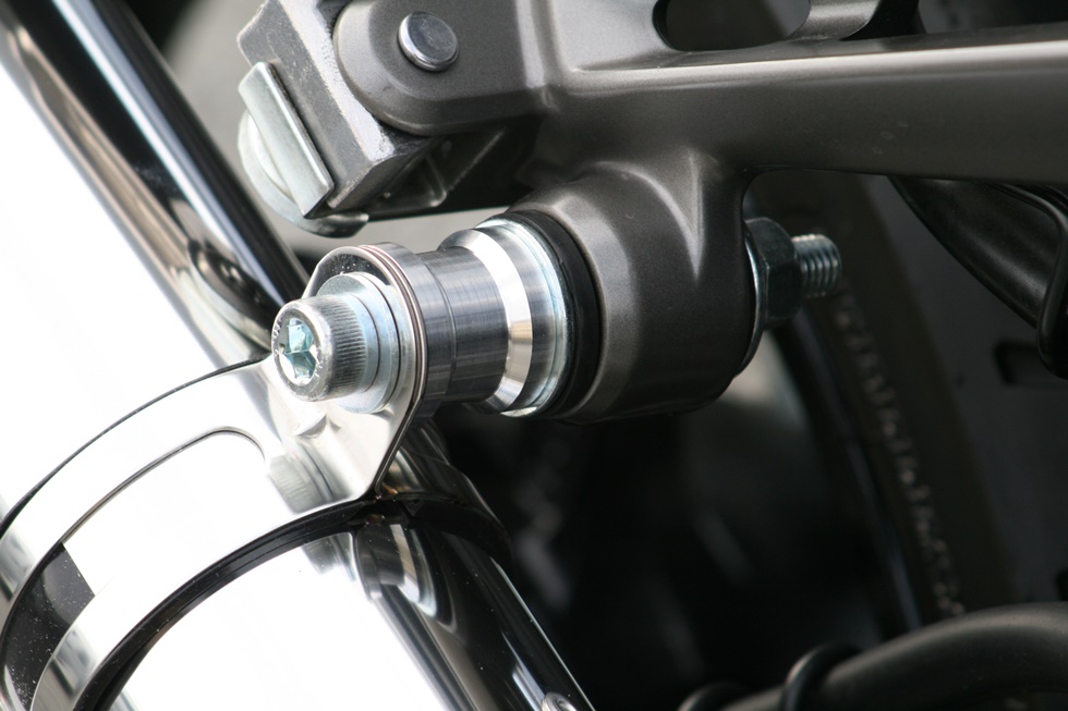 走行中の振動による製品の破損や脱落を防ぐ為、エンジン排気ポート部・エキゾーストパイプ中間ステー・マフラーバンドの3点で、しっかりと車体に固定します。