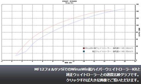 車体型式:JBH-CA44A/O2センサー装着モデルに適合します。社外品マフラーを装着した際に発生するトルク不足を解消し、さらにパワーアップさせる駆動系Kitをご用意しました。ノーマルのウエイトローラーと交換するだけでゼロ発進から最高速までズムーズに加速します。絶妙な設定で高速性能ダウンする事無く低速を強化します。回転の落ち込みムラが無く、細かいアクセル操作で前に出たい時にすっと車体が反応してくれますので町中のすり抜けには抜群の効果を発揮します。WirusWin製ハイパーウェイトローラーKitと純正ウェイトローラーとの速度比較グラフでは、WirusWin製ハイパーウェイトローラーKitの方がゼロ発進時の速度の立ち上がりが抜群に良く、その差が最高速到達まで続き、結果、最高速到達時間が大幅に短縮されている事が分かります。ハイパーウエイトローラーKitは社外品マフラーに合う基本的なキットです。社外品マフラーを取り付け、基本セッティングが出ていない状態から駆動系をベストに合わすのはかなりの労力を費やしてしまいます。まずはハイパーウエイトローラーKitを取り付け、良い状態からベストセッティングに合わせる事をオススメします。また、ノーマル純正マフラーでも同様の効果を見込めます。※ハイパーウェイトローラーKitの取り付けには専用工具や専門知識等が必要になりますので、ウイルズウィン社商品取扱いショップ等、整備に精通している方に取り付けを依頼下さい。