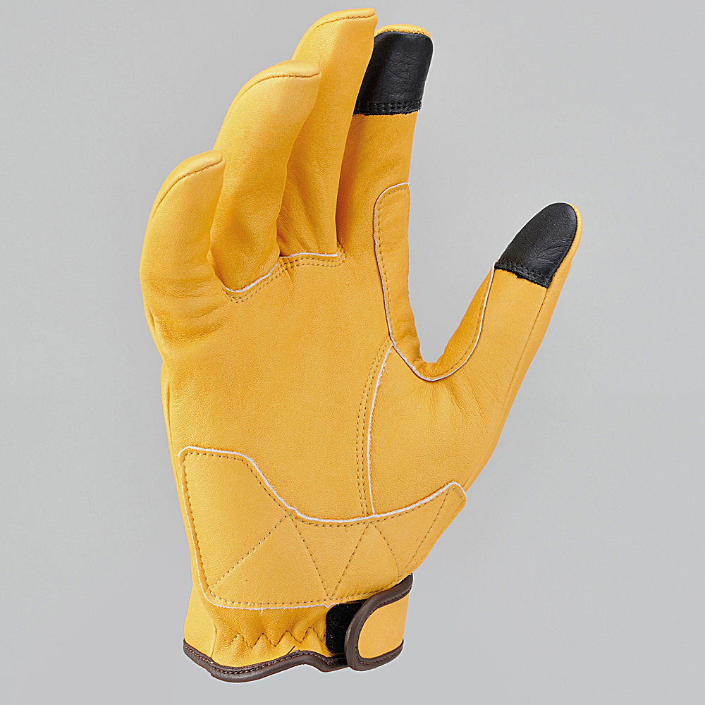 指内側の縫製ラインを最小限にする「ガンカット」を採用することで、外縫いに匹敵するゴロゴロ感の少ない最高のはめ心地を実現。北米産ステアの中でも特に上質なデイリーステアを、日本のタンナーが丁寧になめすことで、肌に吸い付くようにしっとり仕上げた牛本革を、グローブ作りの本場香川県の職人が丁寧に縫い上げました。デザインは、はめやすいショートタイプ。タッチパネル対応。特殊加工のレザーを採用することで、洗濯可能(※)です。カラー:キャメルサイズ:M※洗濯は可能ですが、タッチパネルレザーは洗濯することにより機能が低下します。