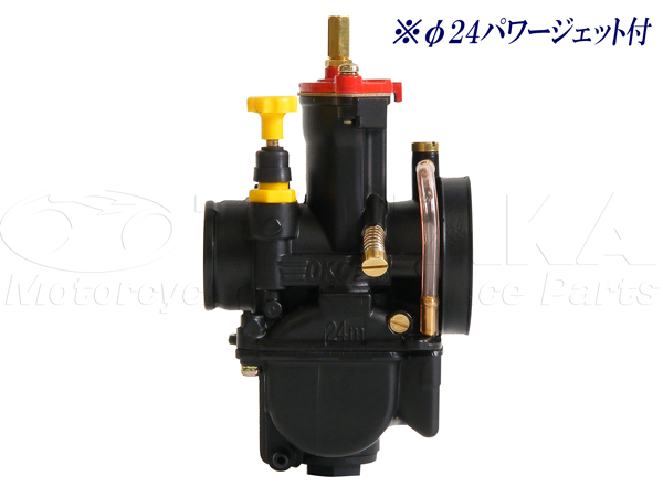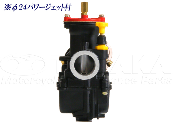 OKO社製 ビッグキャブレター(ケイヒンPWKタイプ)※パワージェット付既存のキャブと交換することでトルク、パワーがUPします。田中商会オリジナルカラー ブラック塗装ボディ/レッド塗装トップキャップメインジェット: #103スロージェット: #42※ロットにより変更する場合がございます。インシュレーター側外径: φ35/吸気側外径: φ50【注意事項】※マニホールド、インシュレーター、エアフィルターの交換が必要です。バイクに合ったものをご用意ください。※取り付け方法、セッティング関するお問い合わせは一切お答えしかねます。※パワージェット付きはφ24のみです
