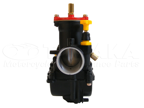 OKO社製 ビッグキャブレター(ケイヒンPWKタイプ)※パワージェット付既存のキャブと交換することでトルク、パワーがUPします。田中商会オリジナルカラー ブラック塗装ボディ/レッド塗装トップキャップメインジェット: #112スロージェット: #45※ロットにより変更する場合がございます。インシュレーター側外径: φ35/吸気側外径: φ50【注意事項】※マニホールド、インシュレーター、エアフィルターの交換が必要です。バイクに合ったものをご用意ください。※取り付け方法、セッティング関するお問い合わせは一切お答えしかねます。※パワージェット付きはφ24のみです