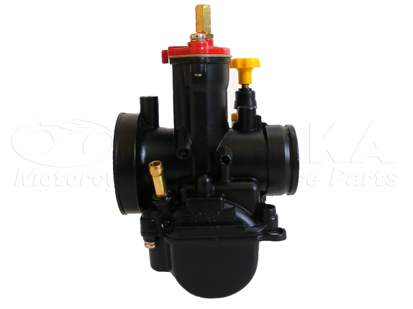 OKO社製 ビッグキャブレター(ケイヒンPWKタイプ)※パワージェット付既存のキャブと交換することでトルク、パワーがUPします。田中商会オリジナルカラー ブラック塗装ボディ/レッド塗装トップキャップメインジェット: #138スロージェット: #48※ロットにより変更する場合がございます。インシュレーター側外径: φ35/吸気側外径: φ50【注意事項】※マニホールド、インシュレーター、エアフィルターの交換が必要です。バイクに合ったものをご用意ください。※取り付け方法、セッティング関するお問い合わせは一切お答えしかねます。※パワージェット付きはφ24のみです