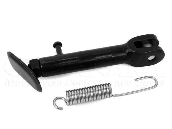 汎用 サイドスタンド 調整式 ショート 130mm〜170mm【適合】 汎用 モンキー/ゴリラ等【長さ】 130mm〜170mm ※取り付けボルトセンターから接地面中央までの寸法【材質】 スチール【付属品】 リターンスプリング