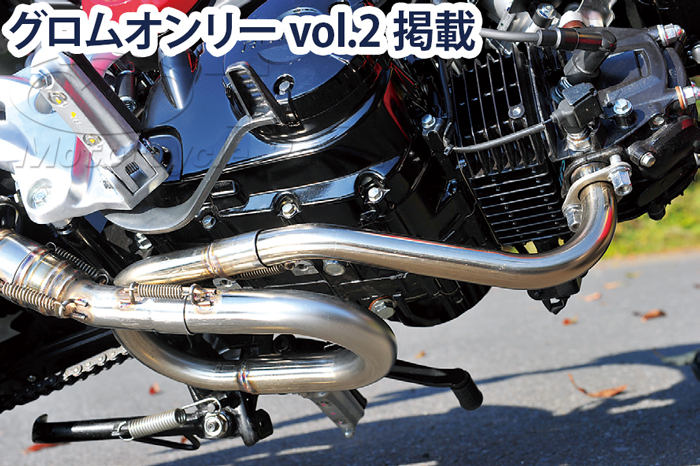 GROM(グロム)/MSX125用 ダウンカーボンマフラー排気管長を最適化する為のトグロ形状エキパイ【材質】 サイレンサー: カーボン/エキパイ: ステンレス【ご注意】※ガスケットは既存のパーツ(純正パーツ)をご使用ください。※輸入品につき微細なキズがある場合がございます。ご了承ください。