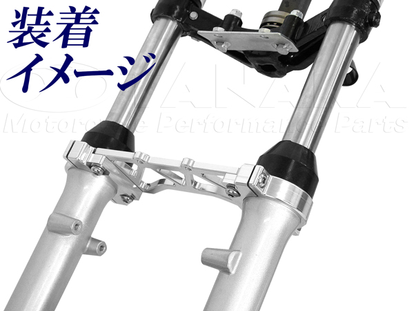 アルミフォークスタビライザーφ26用フォークフォーク幅:約172mm【適合】田中商会モンキーφ26フロントフォーク用に適合クランプ内径: φ43【材質】アルミ削り出しモンキー純正フロントフェンダー取付できます。【注意事項】※φ43フォークに適合いたしますので、必ず取り付け部の大きさを確認してください。※田中商会品番: ca0500/ca1183取付不可※写真は装着イメージです。
