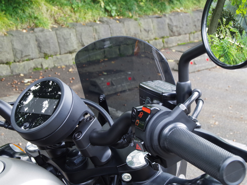 スクリーン:スモーク、アクリル スクリーン取り付けステー:スチール フロントフォーク取り付けステー:ステンレスショートタイプスクリーンサイズ:縦250mm×横240mm快適性や疲労の軽減に使えるウインドスクリーンはワールドウォークの看板製品です。冬だけつけて、夏ははずしたい。ツーリングの時だけつけて、普段ははずしたい。ハーレーのオプション品のようなワンタッチで脱着するデタッチャブル機構は素晴らしいですが、複雑なので生産に手間がかかり価格が高くなってしまいます。そこでワールドウォークが新たに脱着が簡単なウインドスクリーンを開発致しました。取り付けはフロントフォークインナーチューブ部分にステーを追加して行います。各車種のインナーチューブの太さに合わせてステンレスをレーザーカットして製作。フロントフォークのφ数にあわせて1mm単位で正確に作るのは難しい作業ですが下町の工場の技術力で実現しています。ステー、取り付けボルトは全てステンレス、更にアルミ製のカラーを付属しています。どちらも錆や腐食に強く劣化しにくい特徴があります。※スクリーン取り付けステーはスチールを採用しています。ステーの設置、スクリーンの設置それぞれ2本のボルトを使っています。外したい時にはボルトを2本外すだけなので脱着は非常に簡単。気分や用途、季節にあわせて脱着が可能です車種によってフロントフォークのφ数やヘッドライトとの位置関係が異なるのでステーは専用設計で製作し、スクリーンも車種によって取り付け可能なものを選択しています。