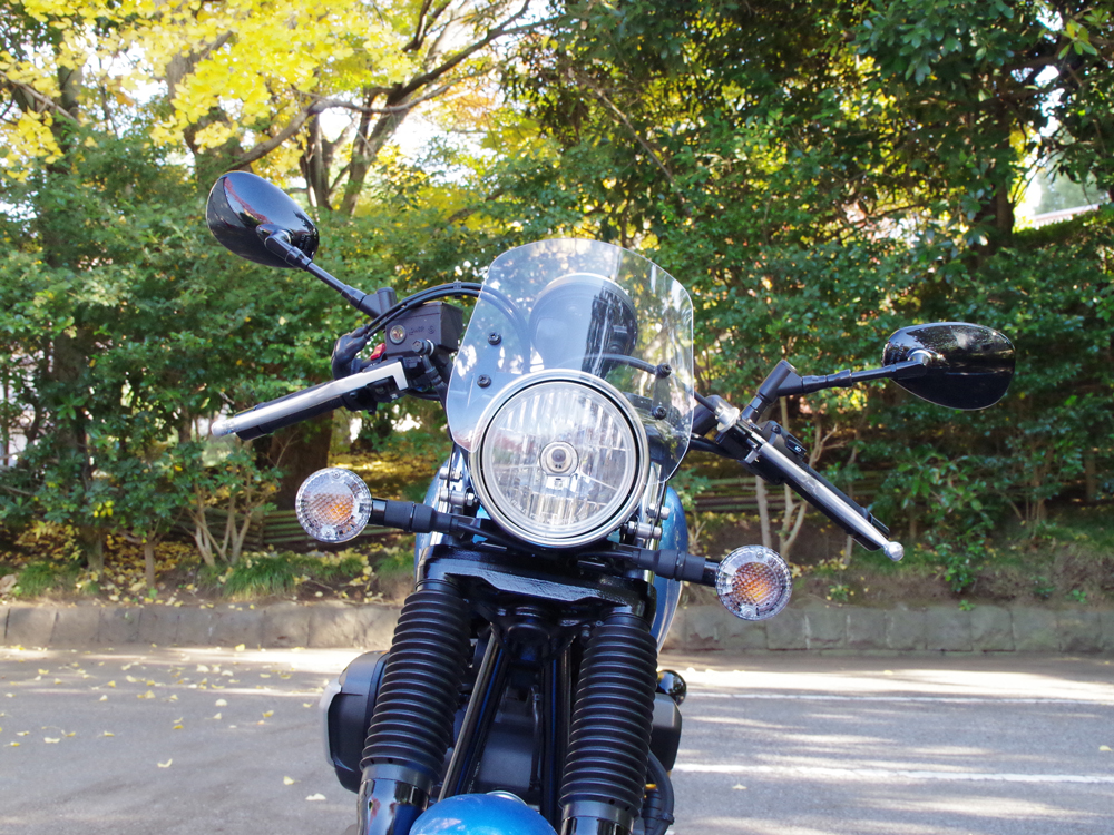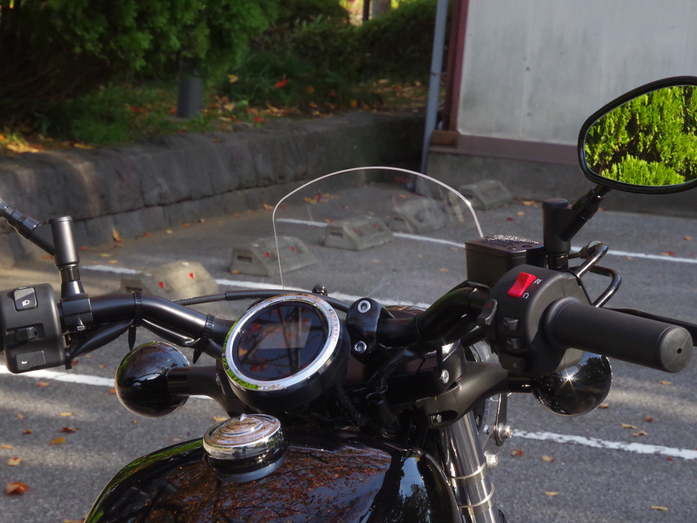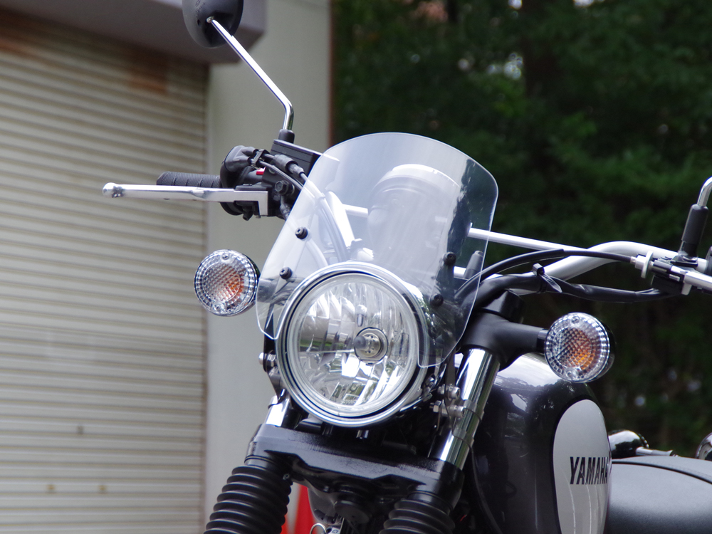 スクリーン:クリア、アクリル スクリーン取り付けステー:スチール フロントフォーク取り付けステー:ステンレスショートタイプスクリーンサイズ:縦250mm×横240mm快適性や疲労の軽減に使えるウインドスクリーンはワールドウォークの看板製品です。冬だけつけて、夏ははずしたい。ツーリングの時だけつけて、普段ははずしたい。ハーレーのオプション品のようなワンタッチで脱着するデタッチャブル機構は素晴らしいですが、複雑なので生産に手間がかかり価格が高くなってしまいます。そこでワールドウォークが新たに脱着が簡単なウインドスクリーンを開発致しました。取り付けはフロントフォークインナーチューブ部分にステーを追加して行います。各車種のインナーチューブの太さに合わせてステンレスをレーザーカットして製作。フロントフォークのφ数にあわせて1mm単位で正確に作るのは難しい作業ですが下町の工場の技術力で実現しています。ステー、取り付けボルトは全てステンレス、更にアルミ製のカラーを付属しています。どちらも錆や腐食に強く劣化しにくい特徴があります。※スクリーン取り付けステーはスチールを採用しています。ステーの設置、スクリーンの設置それぞれ2本のボルトを使っています。外したい時にはボルトを2本外すだけなので脱着は非常に簡単。気分や用途、季節にあわせて脱着が可能です車種によってフロントフォークのφ数やヘッドライトとの位置関係が異なるのでステーは専用設計で製作し、スクリーンも車種によって取り付け可能なものを選択しています。