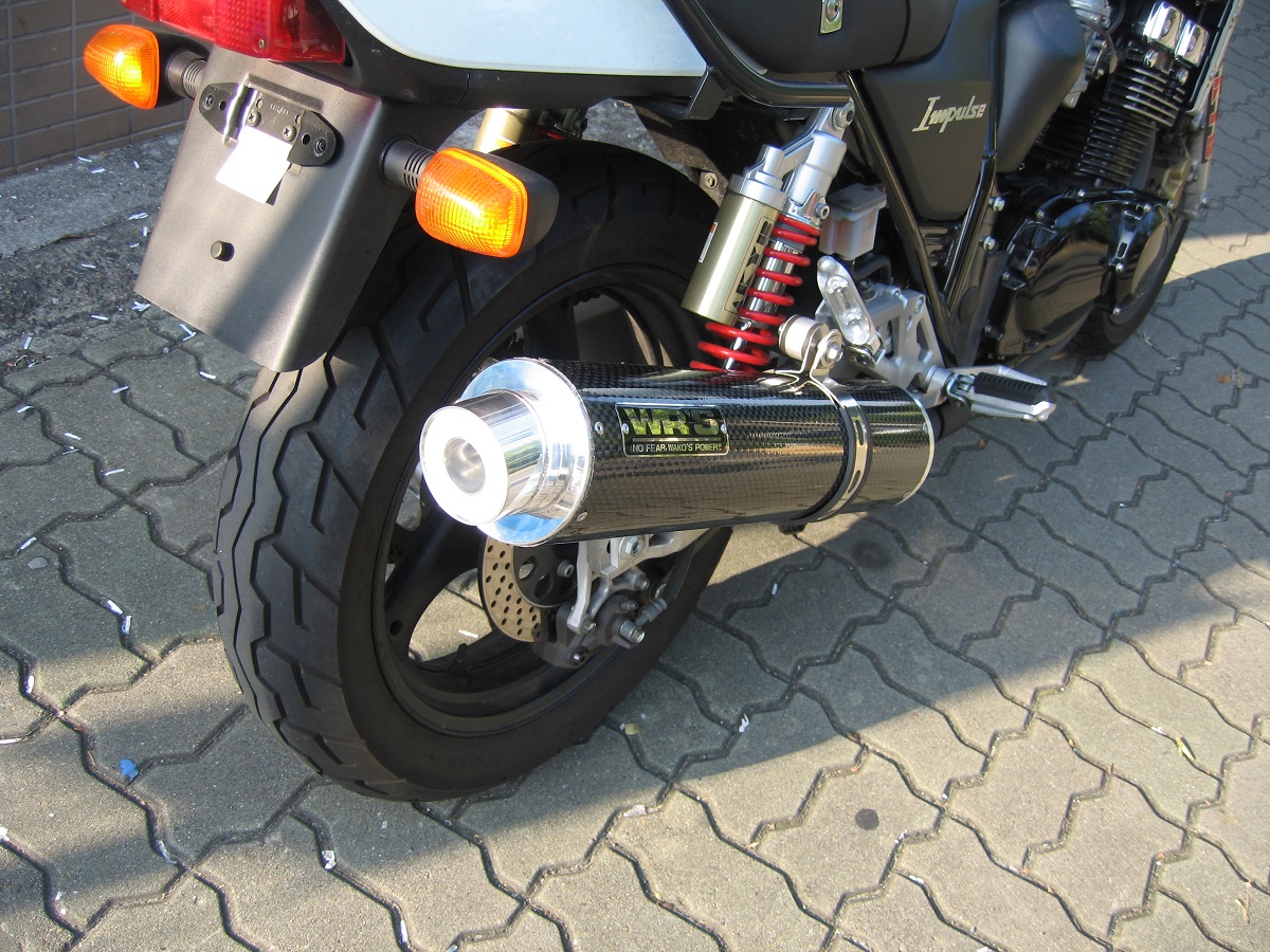 ラウンドタイプ スリップオンマフラー ステンレス/カーボン(JMCA認証) WR'S(ダブルアールズ) インパルス400(BC-GK7CA)