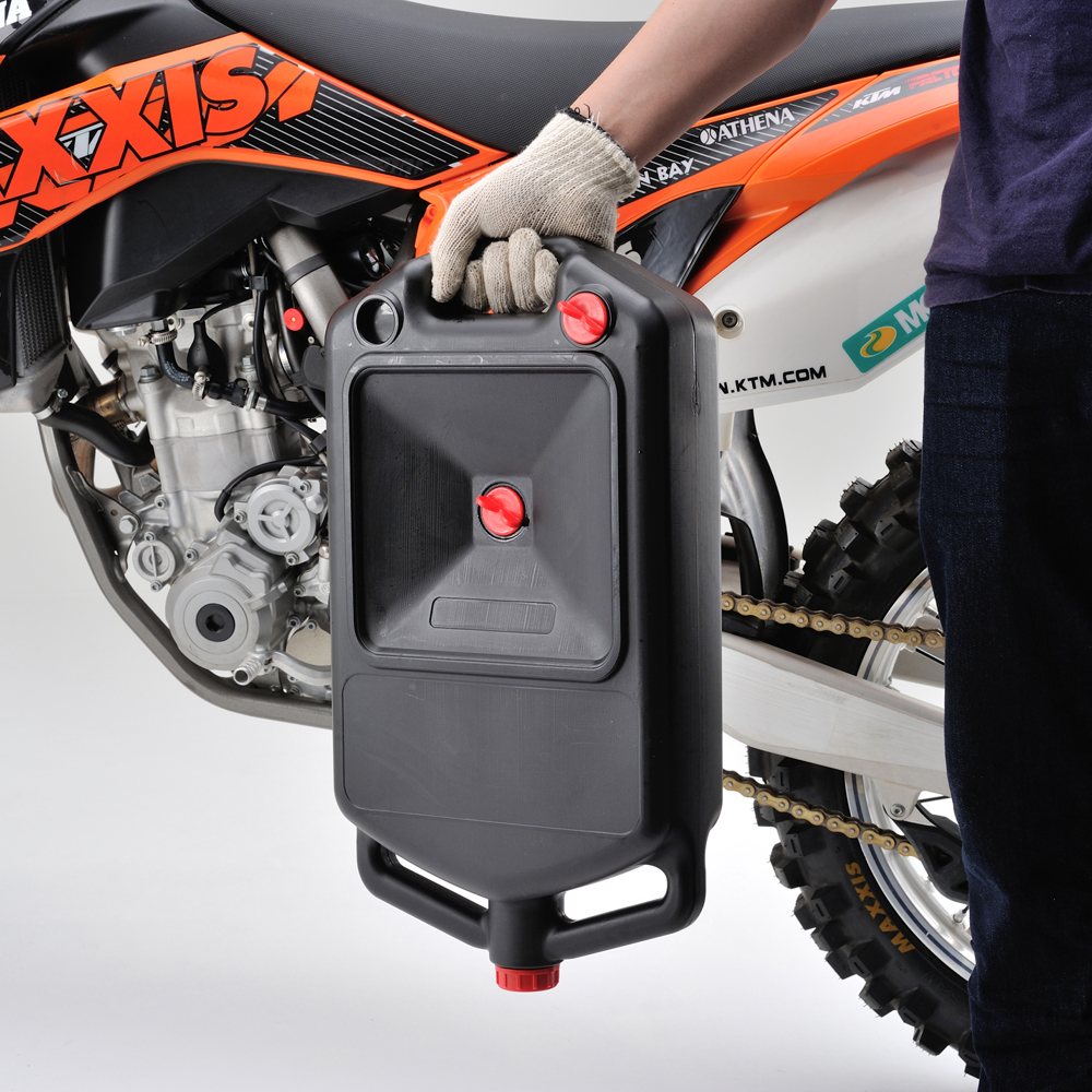 サーキットや自宅でのオイル交換後に、廃油を漏らすことなく処理施設まで運搬できます。