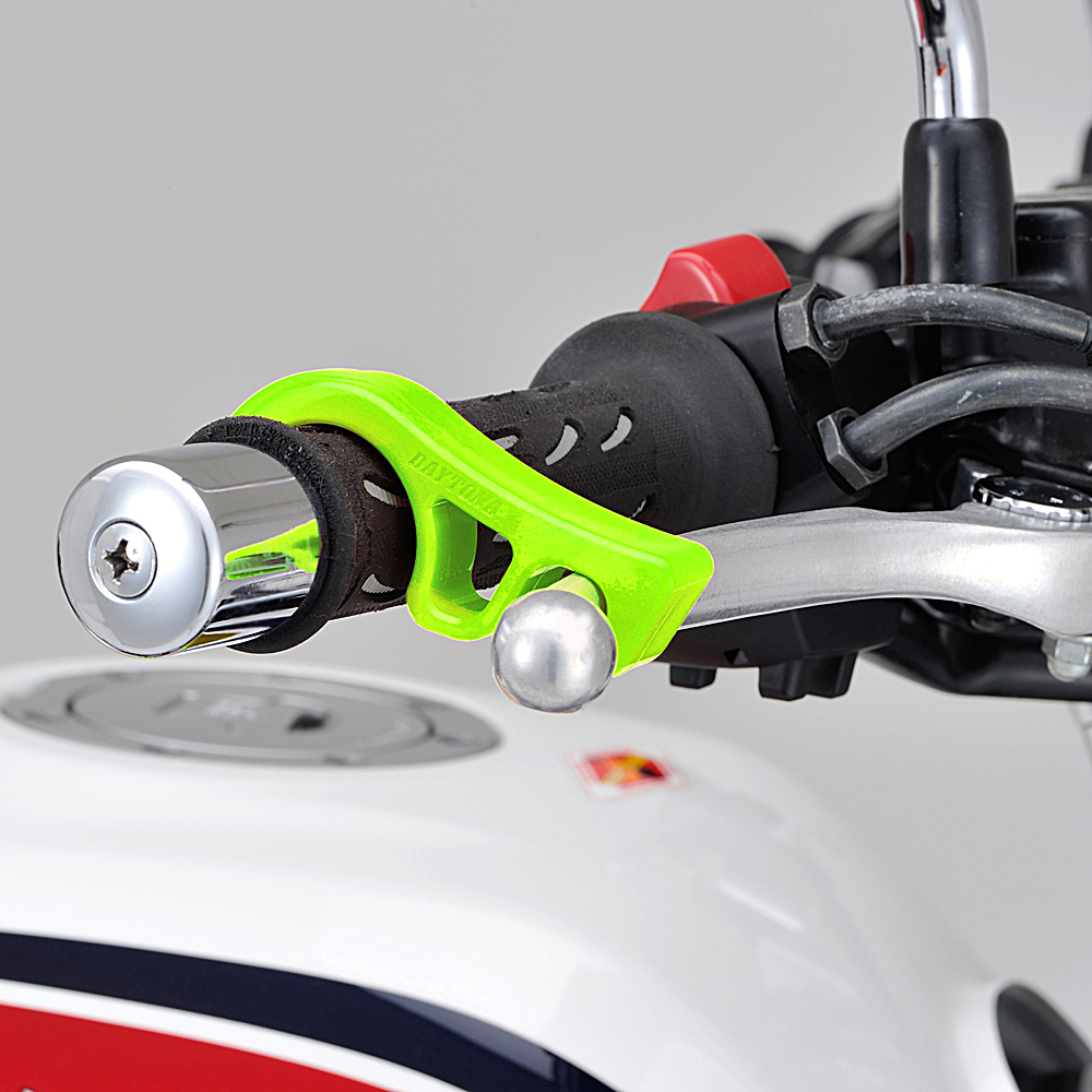 傾斜地など駐車が不安定な時に使用。ブレーキレバーに本品を掛けるだけで、パーキングブレーキになります。リヤタイヤジャッキアップなどの整備の際も、不意な転倒を抑止することができます。カラー:グリーン※マスターシリンダーとブレーキキャリパーへ負担がかかるため、長期のご使用はできません。※ハンドルグリップの種類によって、傷がついたり、外れる恐れがあります。