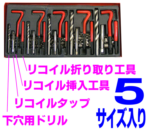 【セット内容】 下穴ドリル、タップ、リコイル、挿入工具、つめ折り工具