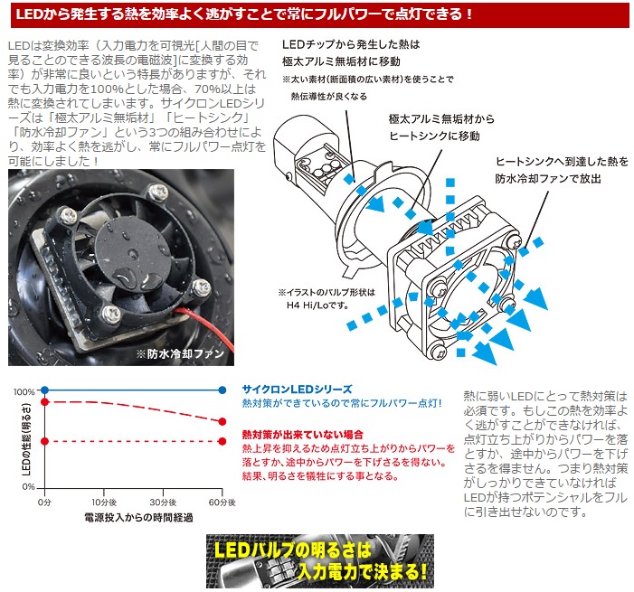 雨に濡れた路面に強い!旧車の雰囲気を崩さない!汎用。冷却用ファンの取付け方法はネジ込み式Hiビーム側に装着する事でロービーム点灯時も左右同時点灯(両目同時点灯)が可能になります。【仕様】バルブ形状: H7定格電圧: DC12V消費電力: 20/20W色温度: 3000K(ハロゲン電球色)【備考】※Hi側専用【ご注意】※取付けは取扱説明書に沿って正しく取付けてください。取付け方法を間違えると火災・故障などの原因となります。※本製品は精密機器ですので取扱いには充分ご注意ください。落としたり、配線を無理に引っ張ったりしないでください。誤った取扱いは故障の原因となったり、怪我や火傷、人命にかかわる重大な事故を引き起こす危険性があります。またスパークや絶縁不良、ショートにより本製品の故障や車両火災の原因となりますので充分ご注意ください。※本製品の分解・改造は絶対に行わないでください。分解・改造した製品の保証は受けられません。※本製品は生活防水ですが完全防水ではありません。コントローラーユニットから出ているカプラーはビニールテープや自己融着テープなどを巻くかコーキング剤などで防水処理をしてください。必要以上に水で濡らす事は避けてください。※LEDバルブやコントローラーユニットを落としたり、強い衝撃を与えるなどしないでください。破損や性能の低下、寿命を縮めるだけではなく、ケガの原因にもなります。※消灯時および点灯中のLEDチップには触れないでください。※取付けは専門知識と技術が必要です。熟練したメカニックのいる指定整備工場などで行ってください。※ご使用前に必ず光軸の調整を行ってください。対向車の視界の妨げになり、交通事故を誘発する恐れがあります。詳しくは道路運送車両の保安基準を参照ください。※本製品の取付けをした事により車両製造メーカーの保証が受けられない場合があります。※本製品の使用により生じた故障・事故などの損害については、当社で一切責任を負いかねます。また、修理の際に生じる脱着工賃やその他諸費用につきましては、当社で一切責任を負いかねます。予めご了承ください。※車検適合の記載について 本製品は車検対応品として販売しておりますが、これは最高光度と色温度についてです。製品の取付け後は必ず、LED(新光源)に対応した検査機にて光軸調整を行ってください。光軸調整不良や経年劣化によるライトレンズの汚れや曇り、擦り傷、灯体内リフレクター部メッキの剥がれ、純正以外のヘッドライトに使用した事による車検落ち、整備不良について当社は一切の責任は負いません。※受注生産につき、納期は約1週間かかります。