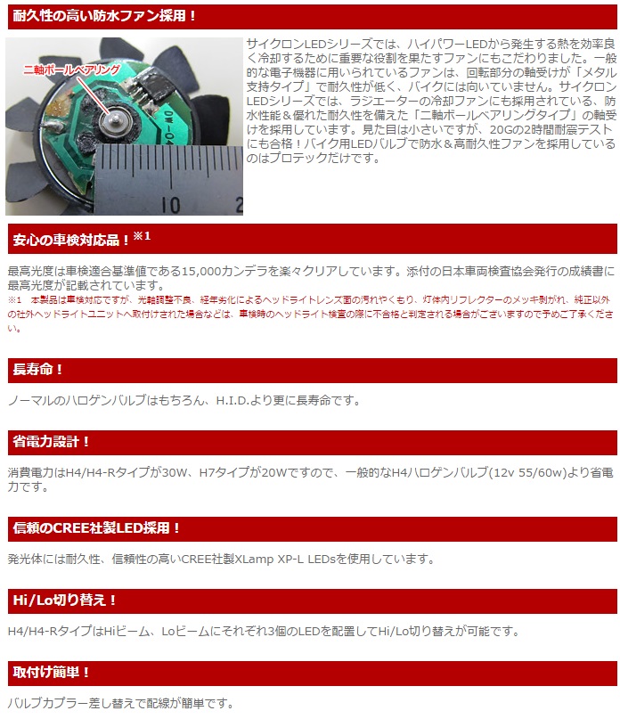 LB7W-H3 LEDヘッドライトバルブキット H7 Hi/Lo ※Hi側専用 3000K PROTEC(プロテック) Ninja1000(ニンジャ)/Z1000SX