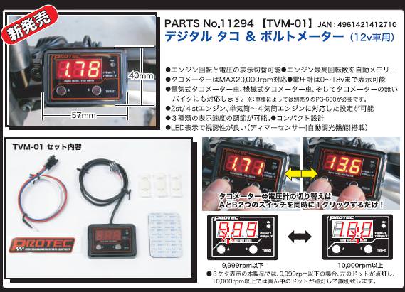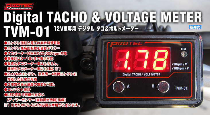 TVM-01 12V車専用 デジタル タコ&ボルトメーター PROTEC(プロテック)