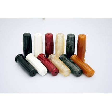 60年代AMALタイプのデザインを採用。●カラーバリエーションはブラック、ホワイト、シルバーラメ(フレーク)、赤ラメ(フレーク)。●長さ=118mm 差込み長=115mm。