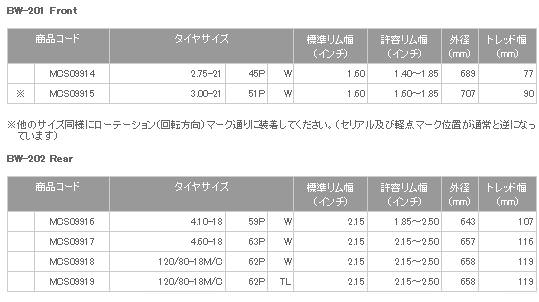 標準リム幅:2.15 許容リム幅:2.15~2.5 外径:648mm トレッド幅:119mm