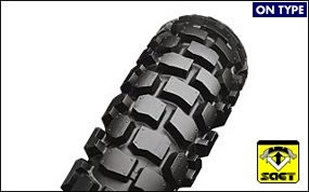 シティオフローダー御用達。パタンも、ブロックも、コンパウンドも、その総合性能はストリートを、オフロードを存分にエンジョイするために。オフロード用タイヤ初のトレッド3分割構造SACT(サクト)をリアタイヤに採用。ロングライフをはじめ、優れたウェット性、オフロード走破性を発揮するON/OFF用タイヤ。オフロードはもちろん、ストリートやシティライディングもオールマイティに楽しみたいお客様に。リアタイヤにロングライフを実現するトレッド3分割構造SACT(サクト)をON/OFF領域のオフロード用タイヤではじめて採用。ウェット性能はパタン、形状、コンパウンドのバランスを充分に考慮し、ストリートでのマンホールやペイント部の走行においても、一般路面と性能格差が大きく出ないように配慮している。さらに、効果的なパタンデザイン、溝形状による摩耗外観の向上、高速走行時のハンドルの振れの軽減も実現。