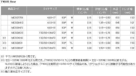 TRAIL WING(トレイルウイング) TW302 120/80-18 TL リア BRIDGESTONE(ブリヂストン)