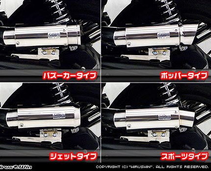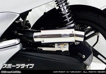 ■受注生産商品となっており、商品手配後 2週間程度入荷にお時間を頂きます。■PCX用サイレンサー型エアクリーナーKit スポーツタイプです。●お好みに合わせて吸入口の形状を、バズーカータイプ、ポッパータイプ、ジェットタイプ、スポーツタイプの4種類から選択していただけます。吸入口の形状が違うだけで4種共基本性能は同じです。●ボディはステンレス製で、還元パイプ対応です。ノーマルエアークリーナーから、簡単にボルトオンで付け替えできます。ローダウン車両にも対応いたします。●クリーナーにはパワーフィルターが装備されています。従来はパワーフィルターにあわせて、キャブレターのセッティングを行わなくてはいけませんでしたが、この商品は必要吸気量にあわせて無段階に調整できますので、キャブレターを取り外したりする作業が必要ありません。還元パイプ対応ということもあり、簡単にセッティング出しやすく、パワーアップが計れます。●ノーマルマフラー、ウイルズウィン製マフラーを付けた場合のエアーの量は、最小限から、15ミリ〜25ミリのばした範囲で、ベストセッティングが捜せ出せます。●※ボアアップ、駆動系、抜けの良いマフラーに変更などの改造をされている場合は、インジェクションコントローラーなどでのセッティングが必要となることがあります。また、さらなるパワーアップを望む方にもインジェクションコントローラーなどでのセッティングは必要です。ノーマルマフラー、ウイルズウィン製マフラーでの組み合わせでは問題はありません。●デザインカスタム重視の方、手軽にパワーフィルター化したい方などに特にお勧めです。WirusWinステッカー、WirusWinプレート付属。