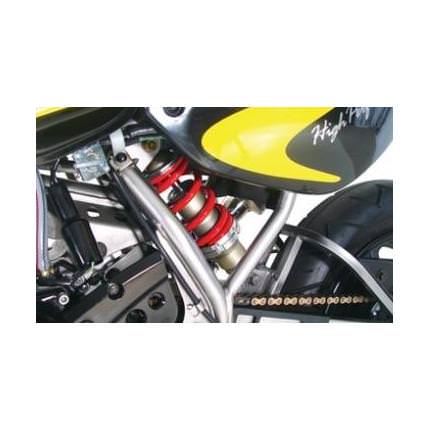 ■オイルダンパー式  ■スプリングプリロード無段階調整 ■自由長:235mm(STD同寸)■本体:スチール製 ■カラー:ボディー(ゴールド塗装)スプリング:(レッド塗装)付属品:レンチ(スプリングプリロード調整用)