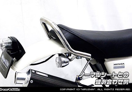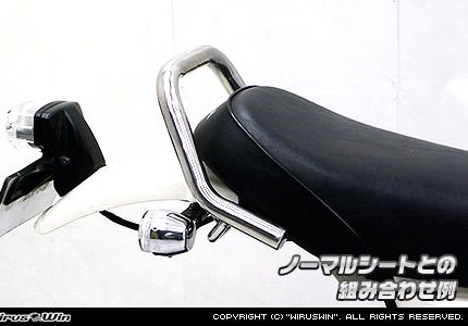 エイプ50専用品です。エイプ100には適合しませんのでご注意下さい。ステンレス製でバフ掛けを施していますので、高級感タップリに仕上がっています。バーの直径は25mmと極太で握りやすく力を入れやすいので、安全性も高くなっております。純正シートとの同時装着に対応しています。また、WirusWin製 フラットシート と組み合わせての装着も可能です。●左右2か所でしっかりと固定できます。無加工でボルトオンで簡単に装着できます。WirusWinステッカー付。材質は耐久性、耐食性の高いオールステンレス製です。