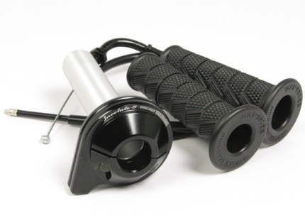 インボリュートハイスロットルはケーブルエンド取り付け穴をHIGHとLOWの2箇所に設け、それぞれ異なった巻取り量を設定出来ます。これによりバイクの使用目的やお好みに応じてスロットル開度を変更することが可能です。又、開け始め時から全開時まで巻取り半径を変化(増加)するようにケーブル溝を設定し、低開度時から滑らかにスロットルバルブを開口させることが出来ます。●オリジナルグリップ付属:耐久性、操作性に優れたグリップラバーを採用。ワイヤーロック用溝付きグリップエンドは貫通タイプ。●スロットル本体は総アルミ材を削り出し、耐食性に優れたカラーアルマイトが施されています。インボリュートハイスロットルはブラックアルマイトとガンメタルアルマイトから選択出来ます。●ハンドルパイプ径Φ22.2用。スロットルケーブルが1本引きのものに限ります。