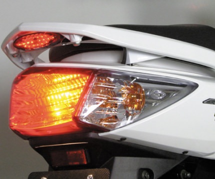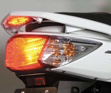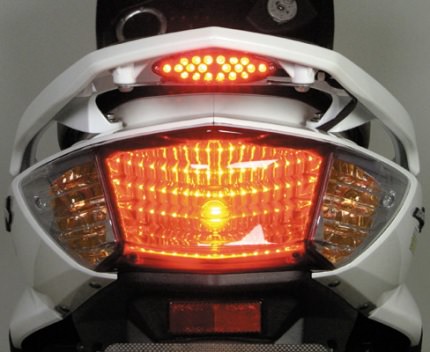 シグナスX(FI)のリアウイングの下に装着出来るLEDストップランプキットです。LEDランプがリアウイングのアクセントとなり、点灯時に車両を美しく演出します。又、ランプをステーで固定し、配線を接続するだけのボルトオン設計なので、加工の必要もなく簡単に装着出来ます。●LEDストップランプはレッドレンズにレッドLEDを内蔵したレッドLEDとクリアレンズにレッドLEDを内蔵したクリアLEDの2種類が設定され、無点灯時の車両スタイルに合わせ選択する事が出来ます。ブラケットはステンレス製バレル研摩仕上げを採用。●点灯パターンは配線の接続方法により、3パターンから選択する事が出来ます。(パターン1:常時点灯で輝度がLOWの状態、パターン2:常時点灯で輝度がHIの状態、パターン3:ブレーキと連動し常時点灯で輝度がLOWの状態からブレーキ時、輝度がHIなる状態)。●電力消費の少ないLEDを使用したテールランプは発光による発熱も少なく、レンズ部をコンパクトにまとめることが出来ます。●小振りながらも尾灯に赤LEDを20個使用している為、はっきりとした明るさを確保しております。又、輝度変化が瞬時なのもLEDテールの特徴です。