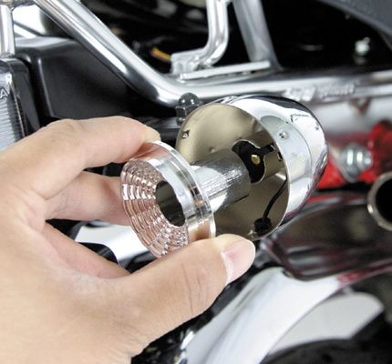 ノーマルウインカーボディーをそのまま使用し、リフレクタ-と付属バルブを取付けるだけの簡単作業でウインカーの雰囲気を一新させることが出来ます。ウインカーバルブを包み込むように設計されたリフレクタ-は無点灯時、点灯時のどちらの場合でも美しく車両を演出します。●配線加工やステー追加作業など面倒な取付け作業は一切必要無く、ノーマルレンズとバルブを外し弊社製リフレクタ-、オレンジバルブ、レンズをはめ込むだけの簡単作業です。・12V10Wバルブ付き ・シルバーリフレクタ- ・2個1セット(車両前後に装着する場合2セット必要です)
