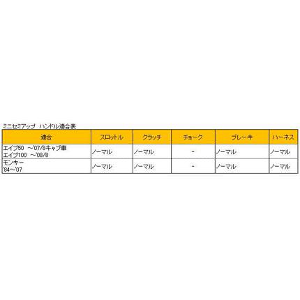●φ7/8(22.2mm) 【スーパーDio ZX/SR タクトS('93~'97 AF31)はスーパーDio ZXと同じ適合。 適合ケーブル等】ミニ用ハンドルは、ホルダー取付部の有効幅(W2)を狭く設計してあります。この有効幅が、装着するハンドルホルダーの外幅以上の数値であることを必ずご確認ください。 【ハンドル・ロンホイkit適合】フロントブレーキ:HB7M095S スロットル:HB6258 リアブレーキ:HB6273 リアブレーキ:HB6274 【ライブDio ZX/SR/S/ 適合ケーブル等】ミニ用ハンドルは、ホルダー取付部の有効幅(W2)を狭く設計してあります。この有効幅が、装着するハンドルホルダーの外幅以上の数値であることを必ずご確認ください。 【ハンドル・ロンホイkit適合】フロントブレーキ:ノーマル スロットル:HB6256 リアブレーキ:HB6257 リアブレーキ:HB6259