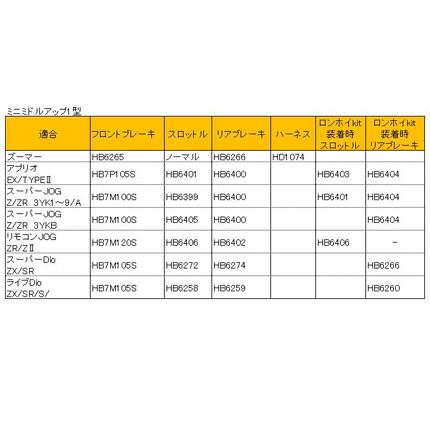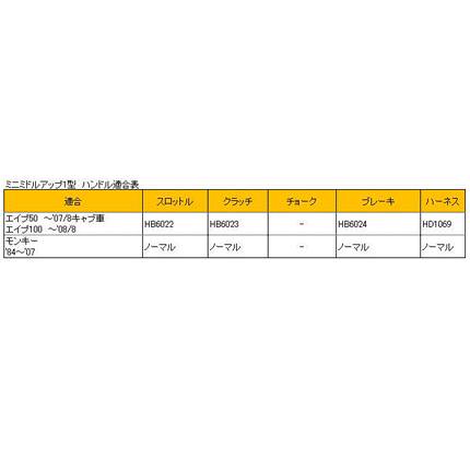 ●φ7/8(22.2mm) 【ライブDio ZX/SR/S/ 適合ケーブル等】ミニ用ハンドルは、ホルダー取付部の有効幅(W2)を狭く設計してあります。この有効幅が、装着するハンドルホルダーの外幅以上の数値であることを必ずご確認ください。 ●ハンドルブレース適応サイズ:SS 【ハンドル・ロンホイkit適合】フロントブレーキ:HB7M105S スロットル:HB6258 リアブレーキ:HB6259 リアブレーキ:HB6260 【スーパーDio ZX/SR タクトS('93~'97 AF31)はスーパーDio ZXと同じ適合。 適合ケーブル等】ミニ用ハンドルは、ホルダー取付部の有効幅(W2)を狭く設計してあります。この有効幅が、装着するハンドルホルダーの外幅以上の数値であることを必ずご確認ください。 ●ハンドルブレース適応サイズ:SS 【ハンドル・ロンホイkit適合】フロントブレーキ:HB7M105S スロットル:HB6272 リアブレーキ:HB6274 リアブレーキ:HB6266