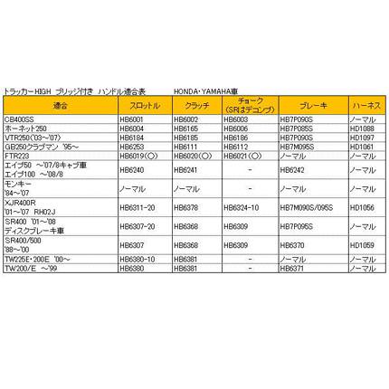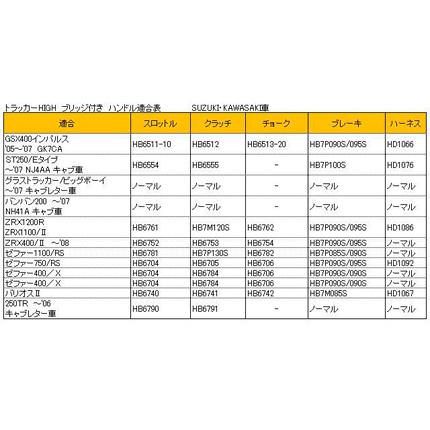 ●φ7/8(22.2mm) 【適合ケーブル等】スロットル:HB6704 クラッチ:HB6784 チョーク:HB6706 ブレーキ:HB7P090S/090S ハーネス:ノーマル ※ブレーキホースはダイレクト仕様の場合を表示しています。マスター~ジョイント迄のノーマルサイズはフルステンレス製には設定サイズがありません。アールズ アルミ製(HB7P035)が適合します。