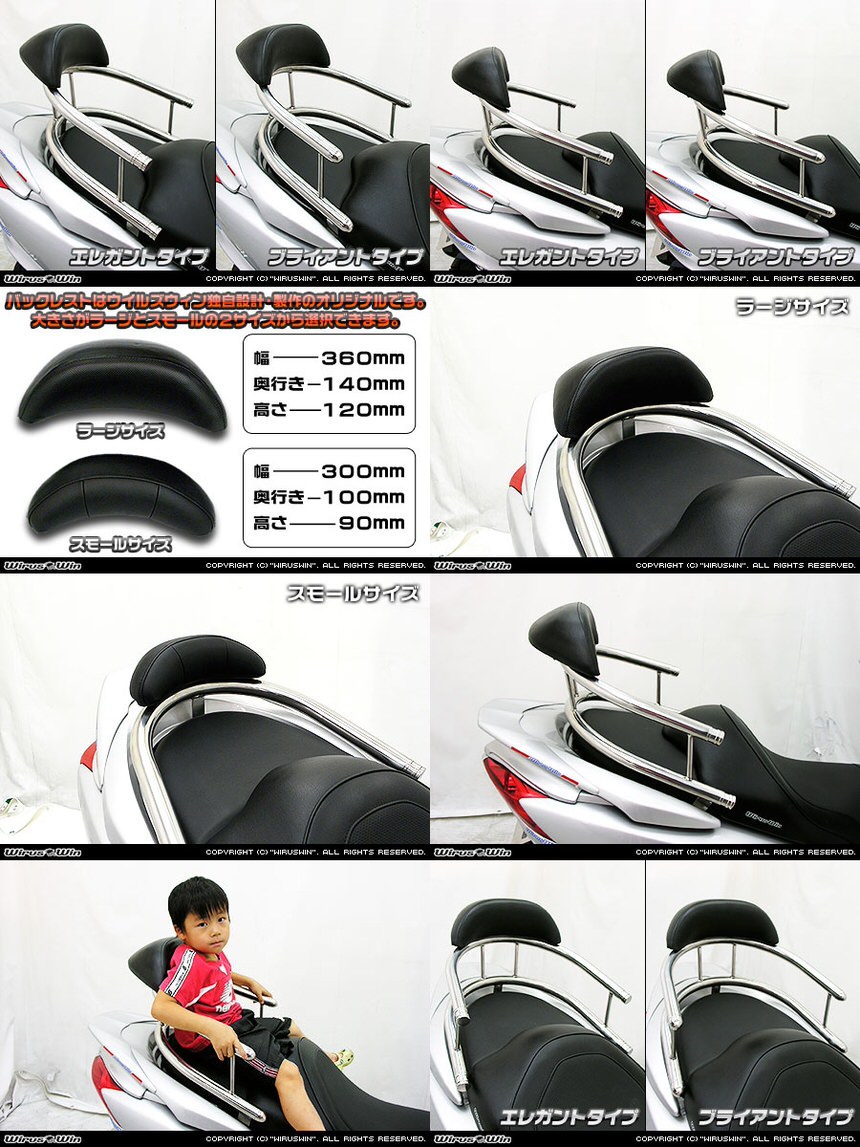 ■受注生産商品となっており、商品手配後 2週間程度入荷にお時間を頂きます。■フォルツァMF10用 バックホールドタンデムバー エレガントタイプです。安心して安全にタンデム走行をしていただけるよう、機能面を重視した商品です。子供から大人までしっかりとタンデムを快適にサポートします。急発進時、横揺れ時、ブレーキング時の転落を防止します。子供、大人をタンデムしてのテスト走行を繰り返し開発した専用特別設計で、パッセンジャーをしっかりサポートしてくれるパーツです。パッセンジャーの快適性向上のため、大型バックレストを標準装備しております。●表面素材にはノーマルシートと似たシート生地を使用していますので、取って付けた感じは無くとてもマッチします。●オリジナルバックレストは型から興して製作していますので、見た目も良く耐久性に優れたしっかりとした作りになっています。●取り付けは、簡単に無加工でしっかりとボルトオンで固定できます。材質は、耐久性、耐食性の高いステンレスを使用しています。オールステンレス製です。●仕上げはバフ掛けを施していますので、高級感タップリでドレスアップにも最適の逸品です!●バーが極太なので、パッセンジャーが握りやすく力を入れやすいので、安全性も高くなっております。